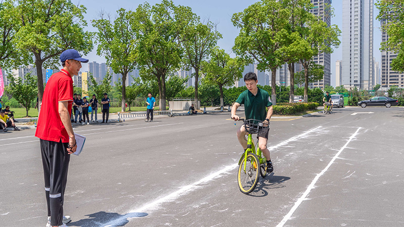 慢騎自行車,充分考驗著選手的穩定性和耐力,我司健兒(er) 全程屏氣凝神,駕駛著自行車蜿蜒行進。