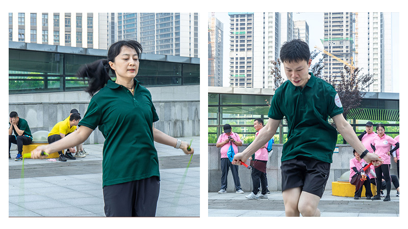 一分鍾跳繩,大家步伐輕快,使盡臂力和腿部力量。繩子隨著手的搖動上下翻飛,不時傳(chuan) 來呼呼的聲響。