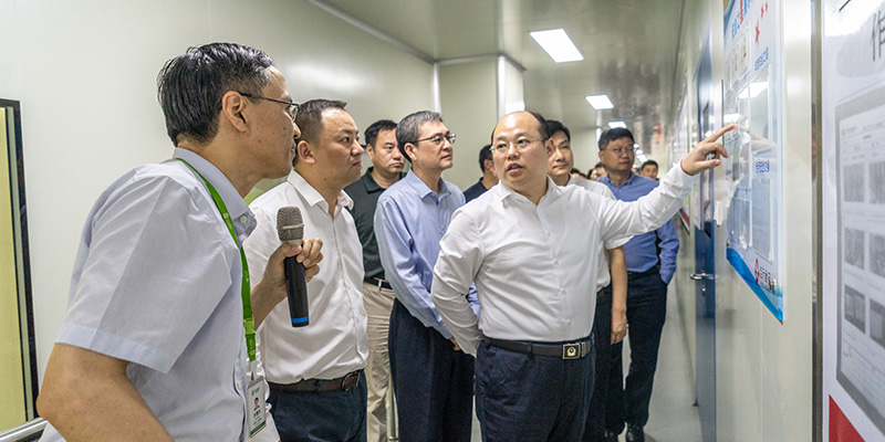 江蘇省市場監管局食品安全總監羅雪明、蘇州市市場監管局副局長杭穎、吳江區副區長季恒義(yi) 等領導陪同調研。公司執行總裁柳新仁、副總裁張建文熱烈歡迎調研組的到來。