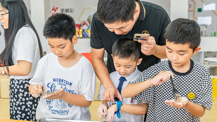 炎炎夏日,一杯午後的茶飲消除了些許疲憊。參觀過後,孩子們(men) 在家長的陪伴下開啟了果茶創意DIY。一雙雙勤勞的小手,將不同的水果、食材搭配在一起,製作出了一杯杯令人垂涎欲滴的新鮮果茶。