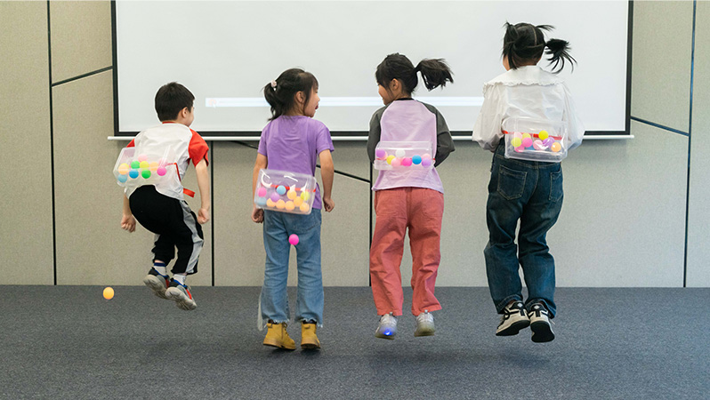 活動伊始,一個(ge) 名叫“公雞下蛋”的破冰遊戲拉開了序幕,伴隨著歡快的音樂(le) ,小朋友們(men) 快速抖落起盒中的小球,大家扭腰蹦跳,使出渾身解數,惹得圍觀的家長連連捧腹。