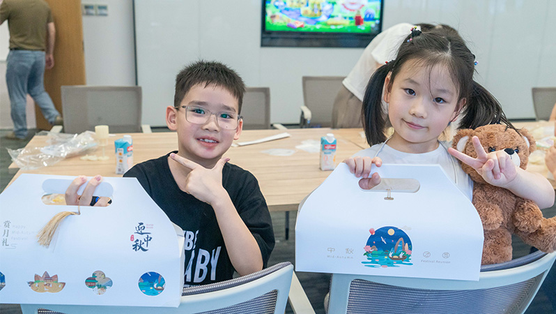 吃月餅是中國曆來過中秋節不可或缺的習(xi) 俗,但親(qin) 自動手做月餅這種體(ti) 驗對很多人來說較為(wei) 新鮮和陌生。看過老師的演示後,大家紛紛動手嚐試製作冰皮月餅。小朋友在家長的幫助下,一起揉麵團、包餡,家庭小組間互相探討著製作步驟。雖然大家都是第一次動手做月餅,但個(ge) 個(ge) 都是興(xing) 致盎然、熱情高漲,尤其是看到自己親(qin) 手做出的月餅,大家的臉上不時洋溢出快樂(le) 、滿足的笑容。