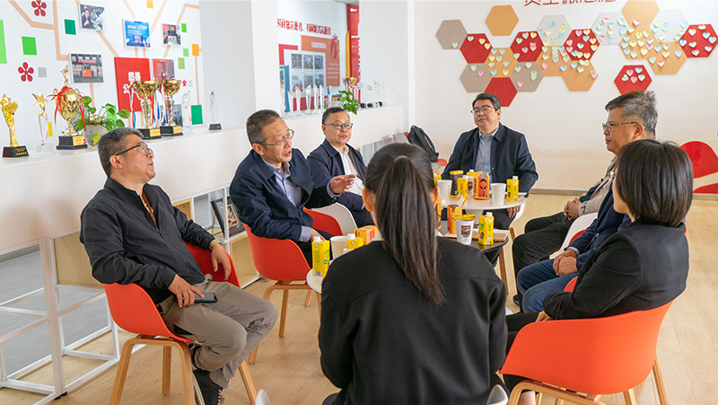 沈向東(dong) 一行先後參觀了G22恒峰工廠“六心佳園”職工之家、工匠示範學堂等職工文化陣地,認真聽取了G22恒峰食品在企業(ye) 經營生產(chan) 、民主政治建設及企業(ye) 發展過程中遇到的困難和需求。